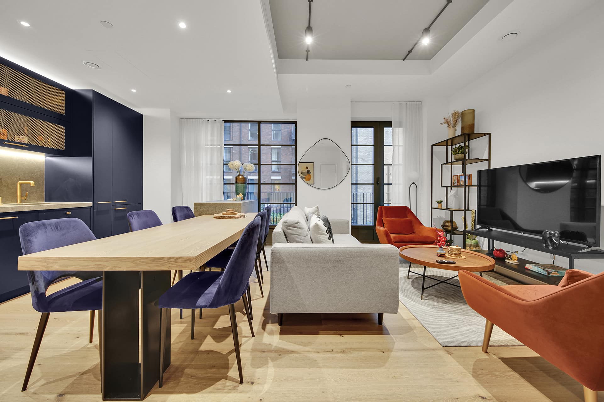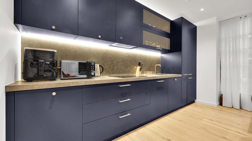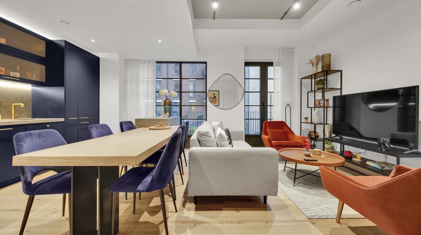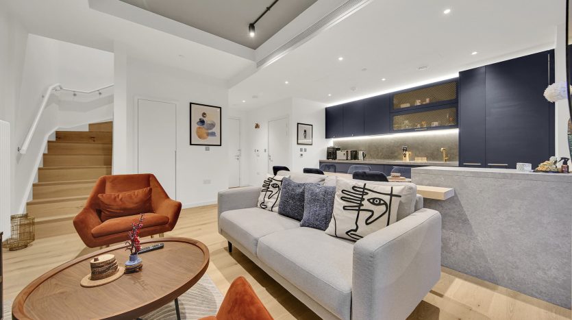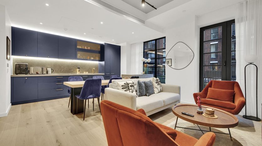 - Open-plan kitchen and living area