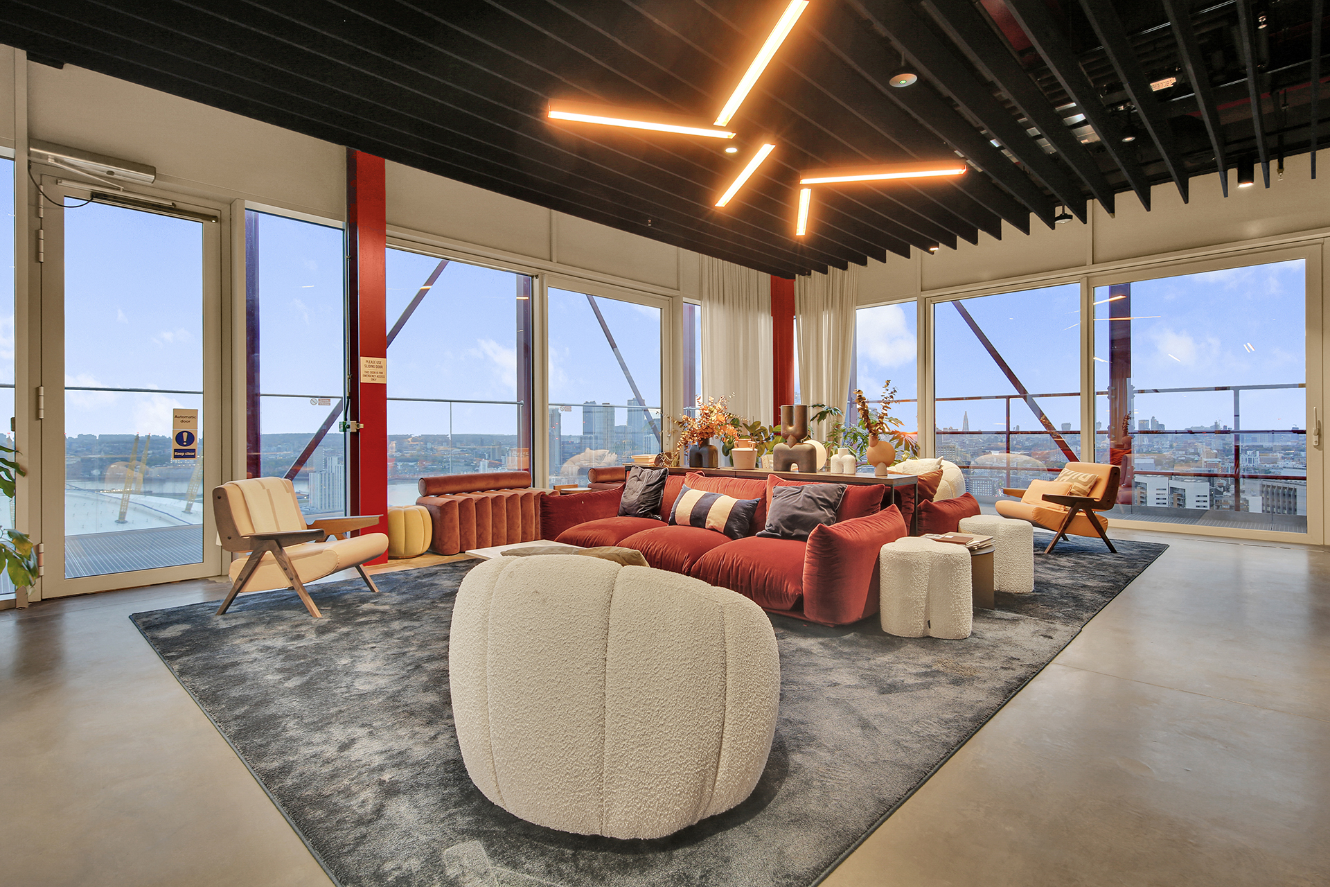 - High-quality interiors with floor-to-ceiling windows