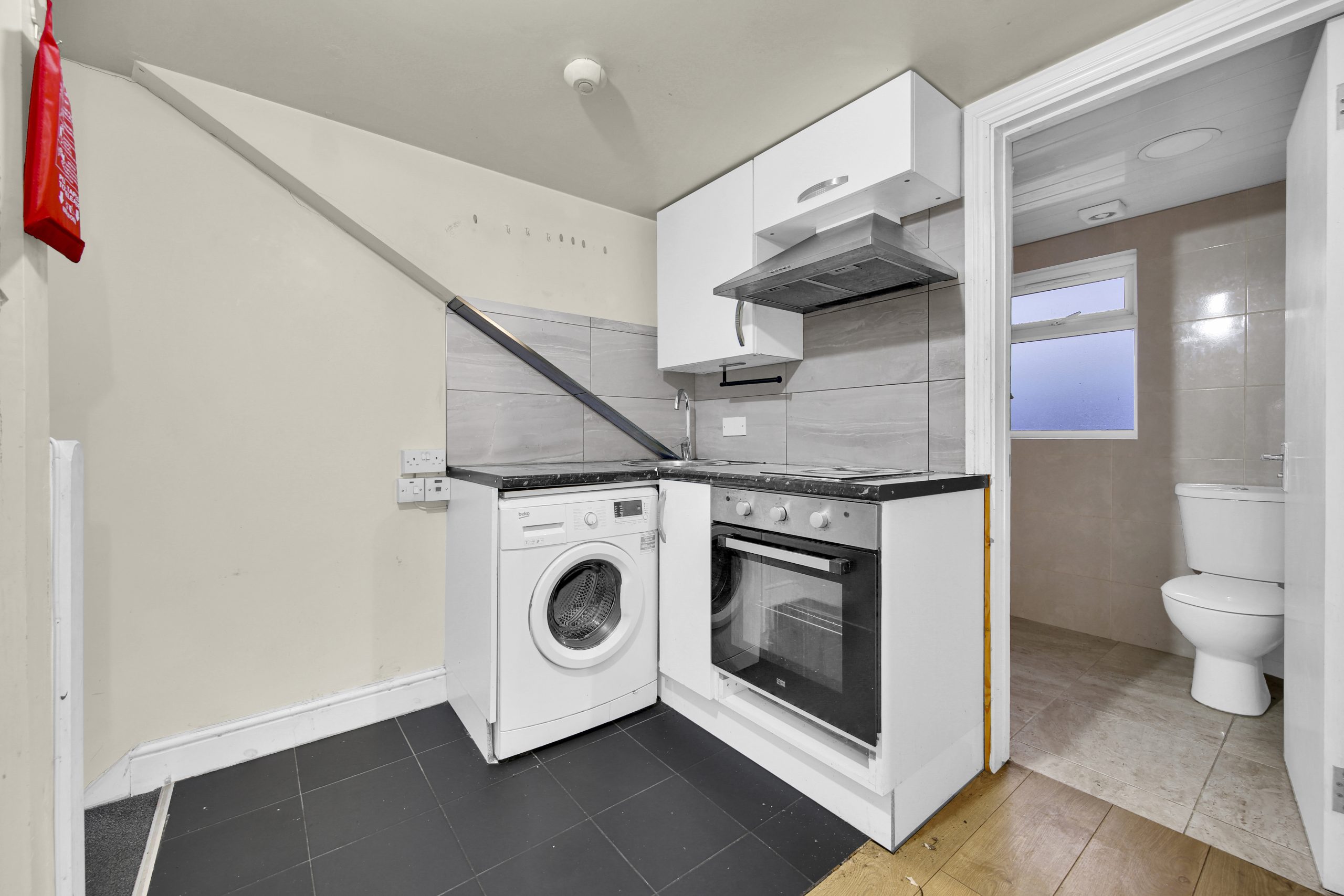The accommodation comprises a double bedroom, a contemporary bathroom, and a bright open-plan living area with a fitted kitchen. The flat is offered furnished and benefits from natural light throughout, providing a welcoming feel from the moment you step inside.