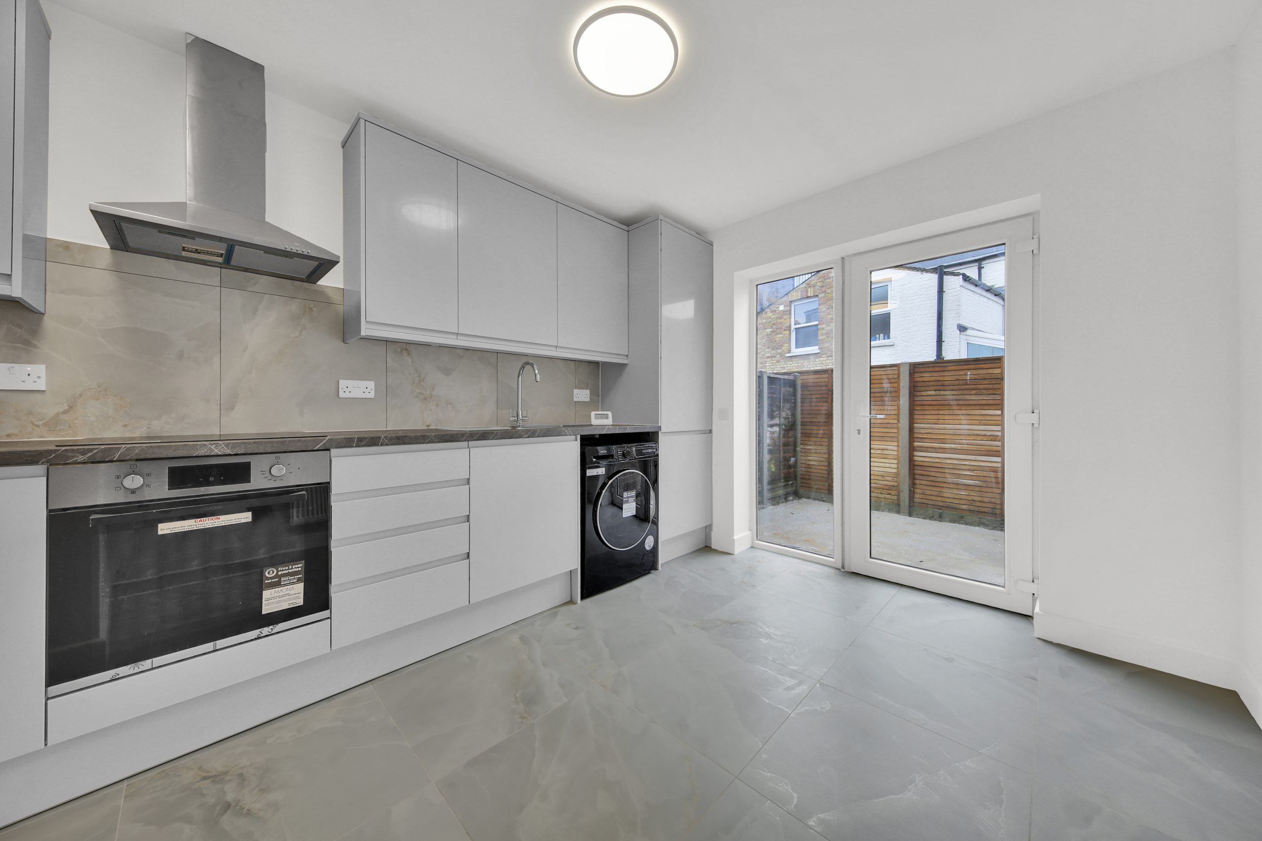 The house features a newly renovated kitchen, bright and well-proportioned living areas, and a functional layout throughout. Accommodation includes three good-sized bedrooms, two bathrooms, and on-street parking.